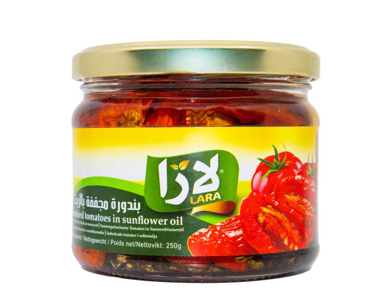LARA Soltorkade Tomater i Solrosolja är högkvalitativa soltorkade tomater som lagts in i mild solrosolja för att bevara sin rika, koncentrerade smak. Tomaterna är skurna och redo att användas i en mängd olika rätter – från sallader och pastarätter till smörgåsar och meze. Den fylliga smaken och den mjuka konsistensen gör dem till en populär ingrediens i både professionella kök och hemmamatlagning.